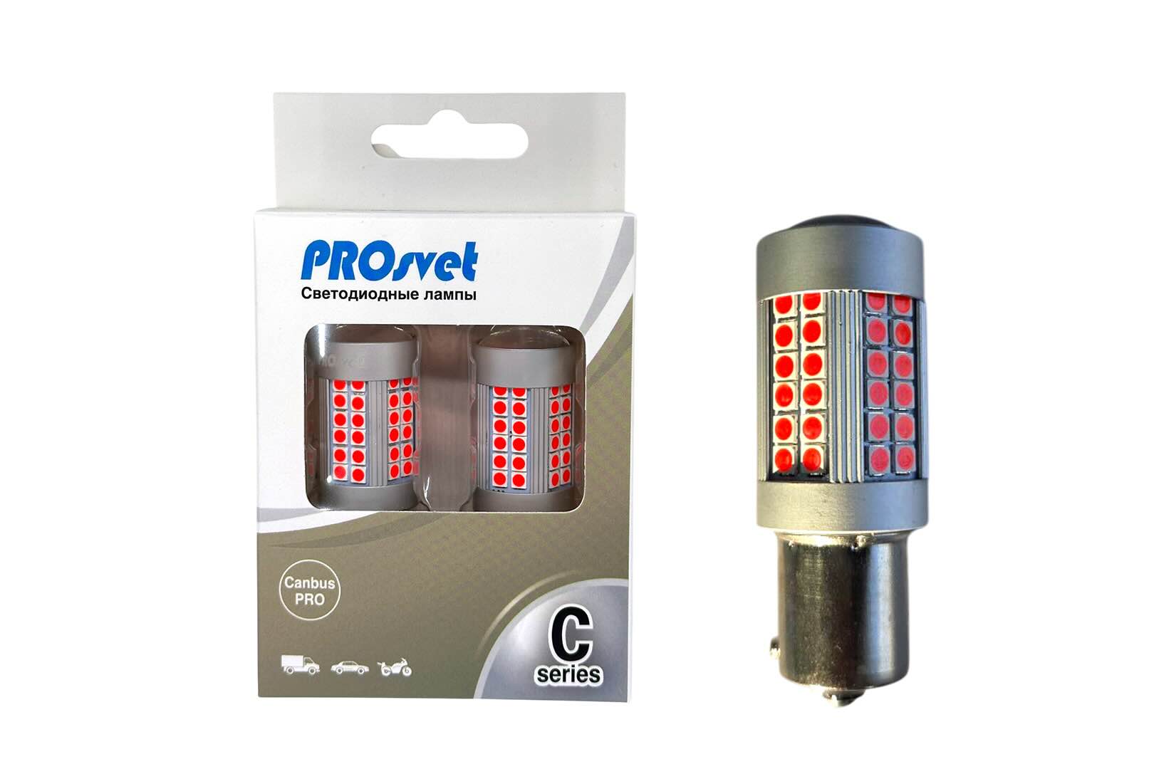 26 C Prosvet PREMIUM 12-24v T25 72SMD 3030 20W 1500Lm CANBUS RED 1конт. со смещ.цок (2шт,комплект)